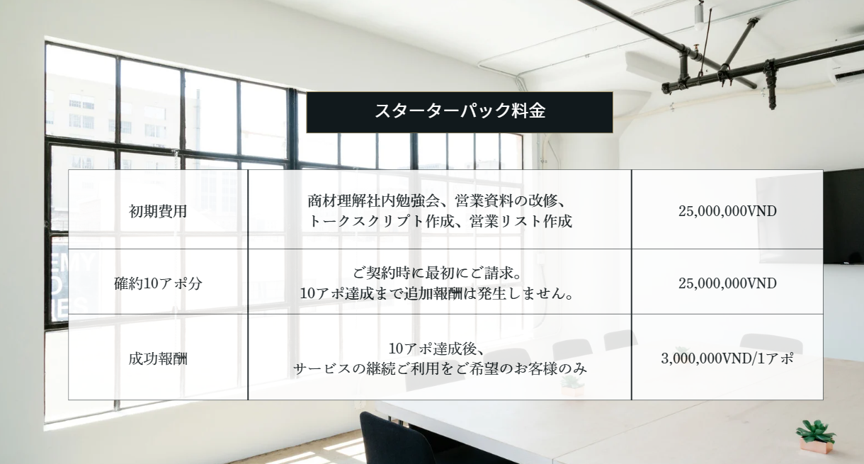 ベトナム企業への電話営業経験を持つ専門スタッフが貴社の代わりにアポイントを取得します。